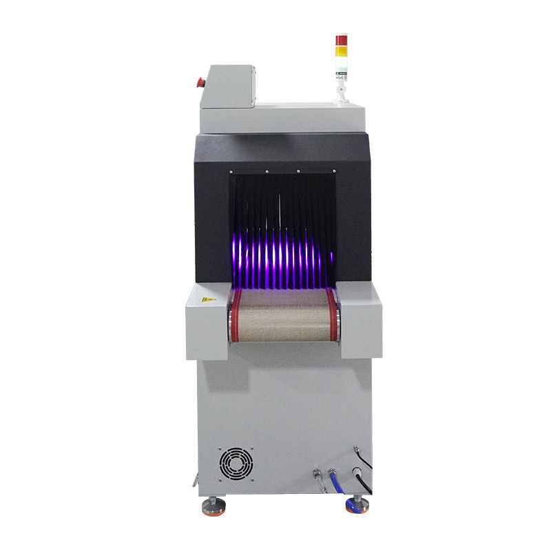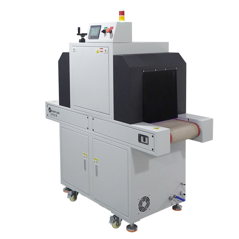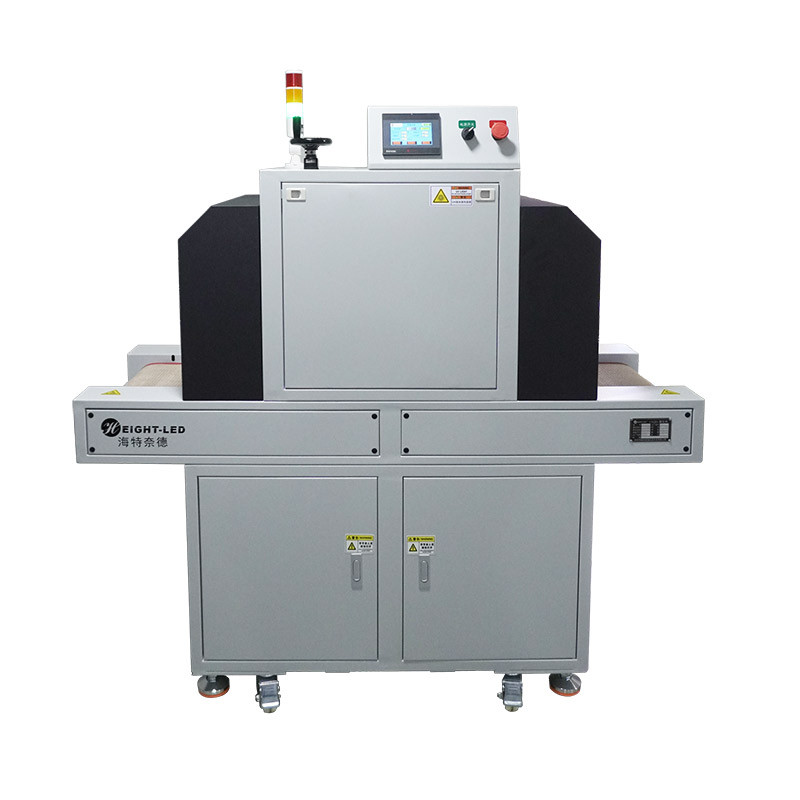 2、設備提供連續(xù)模式和后端模式可選,連續(xù)模式下,點擊啟動按鈕,UV機傳送帶及UVLED一直工作,點擊停止按鈕停止UV機工作;后端模式下,點擊啟動按鈕,UV機傳送帶及UVLED開始工作,當后端傳感器感應到產(chǎn)品后,傳送帶及UVLED停止工作,當產(chǎn)品拿走后繼續(xù)進入下一個循環(huán)。